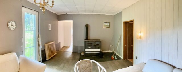 Hier bietet sich Ihnen eine absolut seltene Gelegenheit: Eine großer, massiver-Bungalow (Wochenendhaus Erstwohnsitz möglich!) in absoluter Alleinlage mit großem Grundstück in idyllischer Lage mit Weitblick - zum absoluten Schnapperpreis. Ein Paradies für Tierhalter (und v.a. Hundezüchter, Mehrhundehalter), die sonst große Schwierigkeiten haben, ein passendendes Zuhause zu finden. Auch Pferdehalter könnten hier glücklich werden. Der Bungalow bietet 2 Wohneinheiten mit jeweils 2 Zugängen und insg. bis zu 4 Schlafzimmern. Es wurde bereits Einiges saniert (komplett neues Dach, neue Sammelgrube, neuer Kaminofen (Küchenhexe), eine Aussenfassendämmung wurde gemacht, die große Wohneinheit wurde bereits entkernt. Die kleinere Wohneinheit ist mit wenigen Handgriffen bewohnbar, daher könnte man bereits Einziehen und weiter vom Objekt aus sanieren. Es gibt aber durchaus noch Einiges zu tun, daher der sehr vorteilhafte Preis. Ideal für Hundezüchter, Hunde- und Tierhalter mit großer Tierschar. Prädestiniert für Handwerker und natürlich für Alle, die gerne ein bisschen Abstand zu Nachbarn haben und die Privatspäre und ein Leben mitten in herrlicher Natur schätzen. Komplett abgeschieden sind Sie dennoch nicht: Ein Glasfaseranschluss liegt schon und reichlich Infrastruktur ist nur wenige Fahrminuten entfernt.
